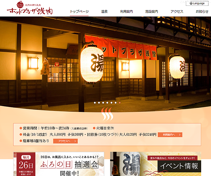 日帰り温泉施設「ホットプラザ浅間」のホームページのリニューアル制作のご依頼を頂き、昨年完成しました。