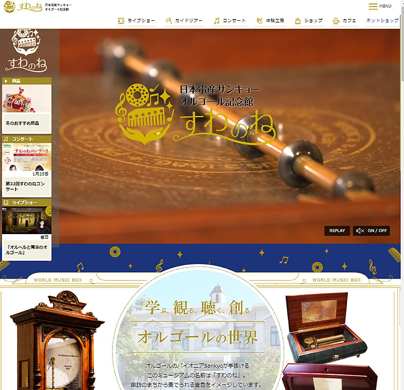 諏訪のオルゴールの博物館「すわのね」のホームページを制作させて頂きました。
