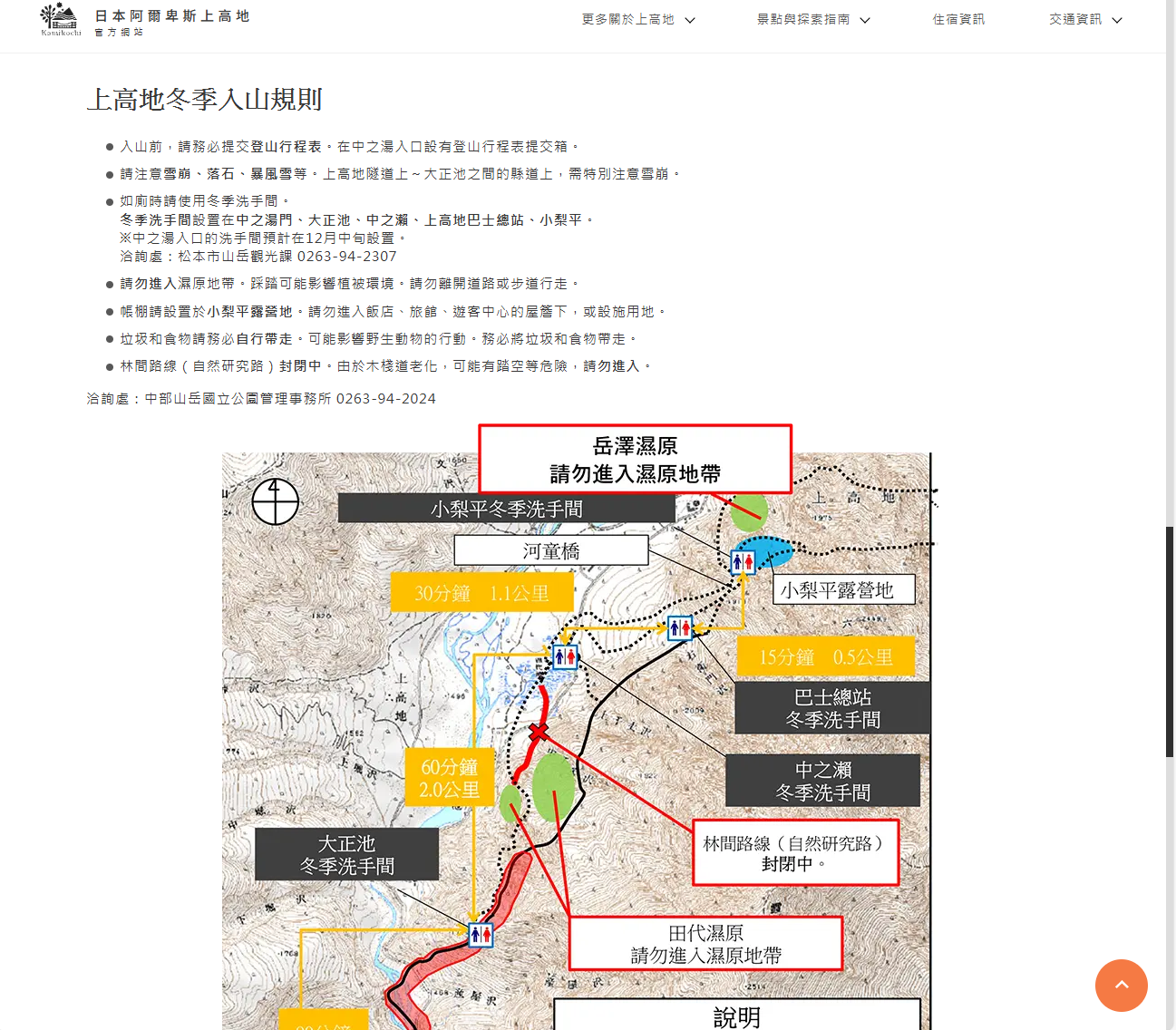 今回、日本語サイトのデザインを踏襲する一方、コンテンツはそれぞれの言語で見る外国人向けに、日本語サイトにない登山のページを入れたり、冬の入山についてや国立公園内のマナーを充実させるなど、日本語とは一部変えてあります。